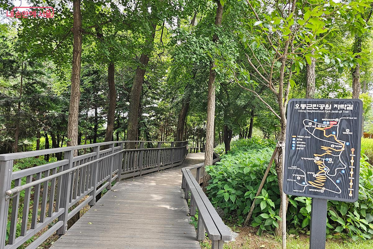 '오동근린공원 자락길'이 도서관과 연결되어 독서와 산책을 동시에 즐길 수 있다. ©정향선