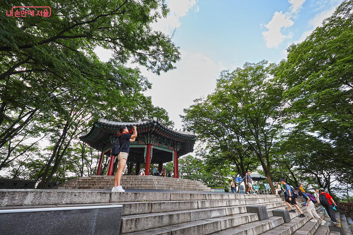 멋진 남산의 하늘을 촬영하고 있는 관람객의 모습 ©김주연