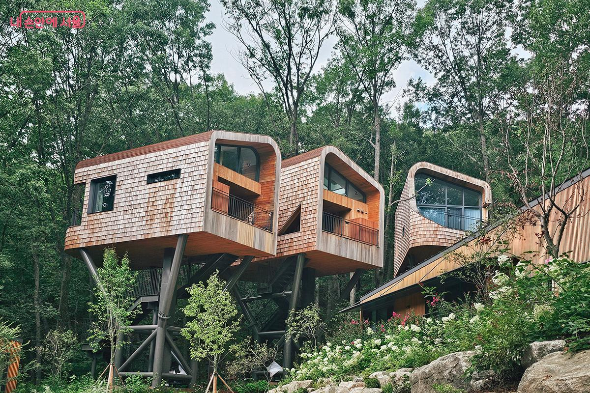 커피를 마신 후 휴양림 곳곳을 둘러보았다. 호텔과 자연휴양림의 장점만을 뽑아 건물을 지었고, 호텔처럼 편안하게 쉴 수 있게 운영한다는 설명 그대로, 세심하게 설계된 건물들이 자연과 조화롭게 어우러져 있었다.