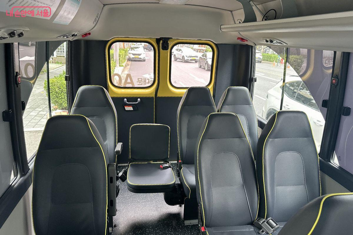 내부 공간은 기존 마을버스와 이질감이 느껴지지 않는다. 일반적인 좌석이 마련돼 있고 안전수칙과 이용안내 포스터가 있다. QR코드를 이용해 이용 만족도를 조사할 수 있다. 이 같은 후기를 통해 더 나은 서비스를 제공할 계획이다.