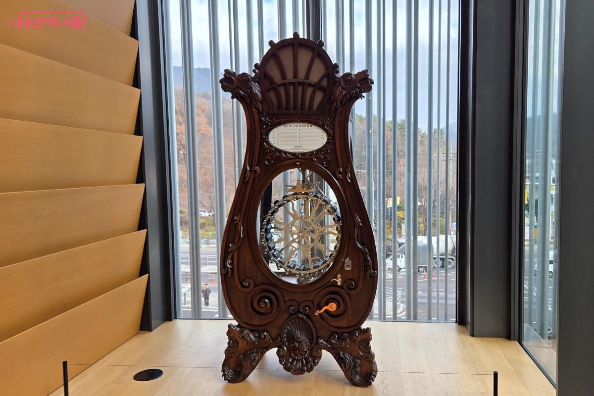 지하 2층 라운지에 들어서는 순간, 벽면을 가득 채운 수만 장의 LP 컬렉션의 압도적인 분위기에 탄성이 터져 나왔다. 패브릭 자재를 활용해 꽃잎이 펼쳐진 듯한 구조의 인테리어는 몽환적인 분위기를 연출했다. 소리를 흡수하고, 반사해서 음향의 균형을 만든다고 했다. 다음으로 이동한 곳은 오전 10시 투어에만 청음이 가능한 대형 오르골이 있는 곳이다. 고장으로 당분간은 들을 수 없다고 했다. 라운지에 설치된 오르골의 소리를 듣고 싶다면 문의 후 방문해야 할 것이다. 양옆의 초대형 미러포닉 M1 스피커를 통해 흘러나오는 음악을 들으며 마무리했다.