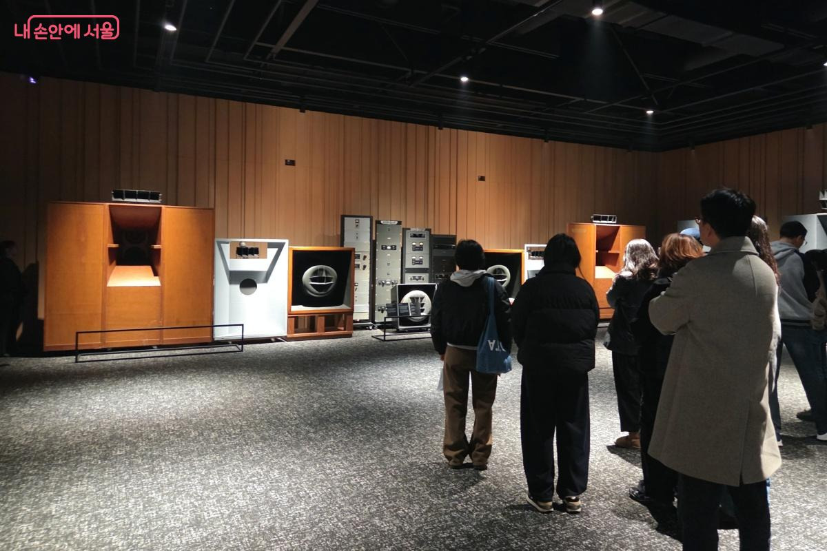 매킨토시, 마란츠 등 가정용 하이파이 오디오를 확인하며 투어를 시작했다. 각기 다른 크기와 형태의 수많은 스피커와 오디오를 한자리에서 만나는 시간이었다. 스피커는 오디오 신호 체계의 마지막 단계로 오디오 신호를 사람의 귀가 들을 수 있는 음파로 변환시킨다. 오디오 발명의 시작을 알리는 에디슨의 축음기까지 전시되어 있었다. 동전을 넣어야만 소리를 들을 수 있는 괘종시계는 주크박스였다.