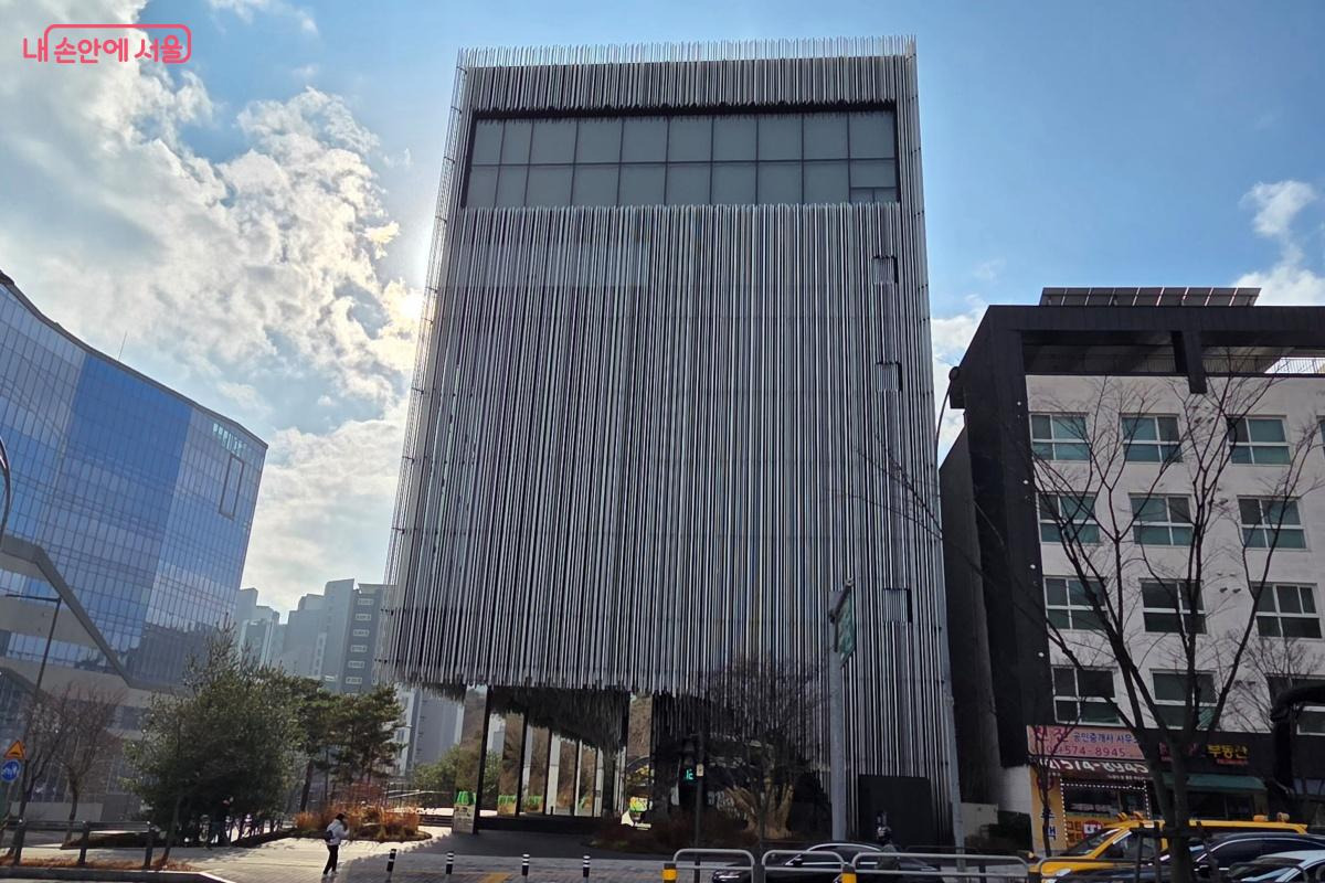 지하철 신분당선 양재역 9번 출구에서 470번 버스를 이용해 탑성마을·서초포레스타 입구 정류장에서 하차하니 도로 건너편에 ‘오디움’ 건물이 보인다. 세계적인 건축가 쿠마 켄고가 디자인한 오디움은 외관부터 하나의 예술 작품처럼 느껴졌다. 지상 5층, 지하 2층 규모의 건물은 서로 다른 알루미늄 파이프 2만여 개가 수직으로 둘러싸여 있다. 숲속에서 비추는 햇살을 표현해 만들어진 건물이라고 했다. 나무숲은 날씨, 시간, 계절에 따라 햇살의 변화를 느낄 수 있듯이 파이프 숲도 시시각각 새로운 분위기를 연출한다.